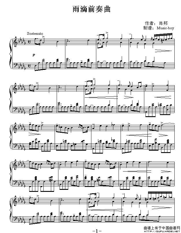 温馨提示:想要保存雨滴前奏曲,舒缓灵动的乐章曲谱?在曲谱图片上单击右键,选择"图片另存为...",即可将该曲谱保存到您的电脑本地,想要打印出来?将图片插入到WORD中,调整合适到大小打印即可。