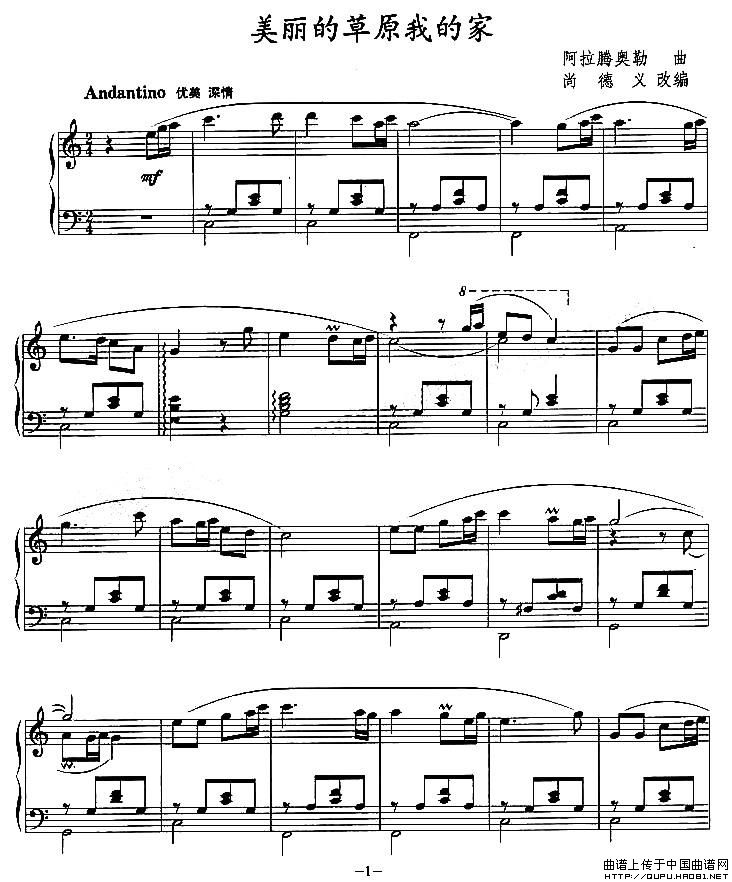 温馨提示:想要保存美丽的草原我的家,悠扬旋律诉乡情曲谱?在曲谱图片上单击右键,选择"图片另存为...",即可将该曲谱保存到您的电脑本地,想要打印出来?将图片插入到WORD中,调整合适到大小打印即可。