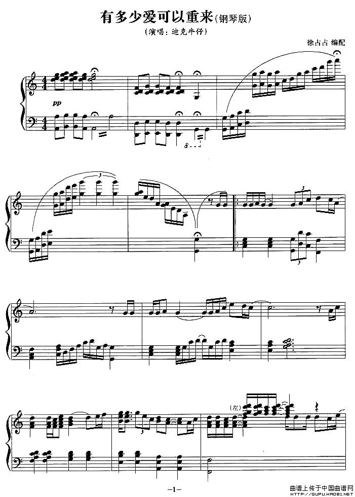 温馨提示:想要保存有多少爱可以来钢琴谱,唱出心中无尽爱意曲谱?在曲谱图片上单击右键,选择"图片另存为...",即可将该曲谱保存到您的电脑本地,想要打印出来?将图片插入到WORD中,调整合适到大小打印即可。