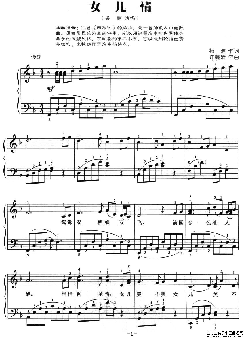 温馨提示:想要保存女儿情弹唱谱,柔情尽显女儿心 女儿情弹唱谱,浪漫曲调诉深情 女儿情弹唱谱,经典旋律韵悠长曲谱?在曲谱图片上单击右键,选择"图片另存为...",即可将该曲谱保存到您的电脑本地,想要打印出来?将图片插入到WORD中,调整合适到大小打印即可。