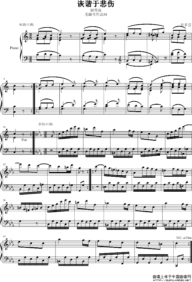 温馨提示:想要保存诙谐于悲伤,曲风独特韵味足曲谱?在曲谱图片上单击右键,选择"图片另存为...",即可将该曲谱保存到您的电脑本地,想要打印出来?将图片插入到WORD中,调整合适到大小打印即可。