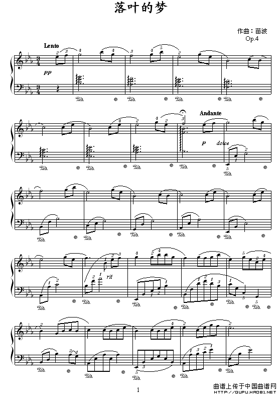 温馨提示:想要保存落叶的梦,谱写秋日情,落叶的梦,奏响静谧乐章,落叶的梦,诉说飘零思绪曲谱?在曲谱图片上单击右键,选择"图片另存为...",即可将该曲谱保存到您的电脑本地,想要打印出来?将图片插入到WORD中,调整合适到大小打印即可。
