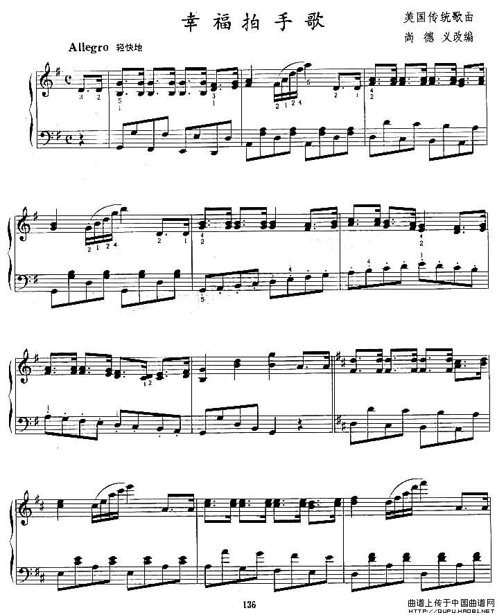温馨提示:想要保存幸福拍手歌钢琴谱,欢快节奏活力足 幸福拍手歌钢琴谱,简单易学乐趣多 幸福拍手歌钢琴谱,传递快乐暖人心曲谱?在曲谱图片上单击右键,选择"图片另存为...",即可将该曲谱保存到您的电脑本地,想要打印出来?将图片插入到WORD中,调整合适到大小打印即可。