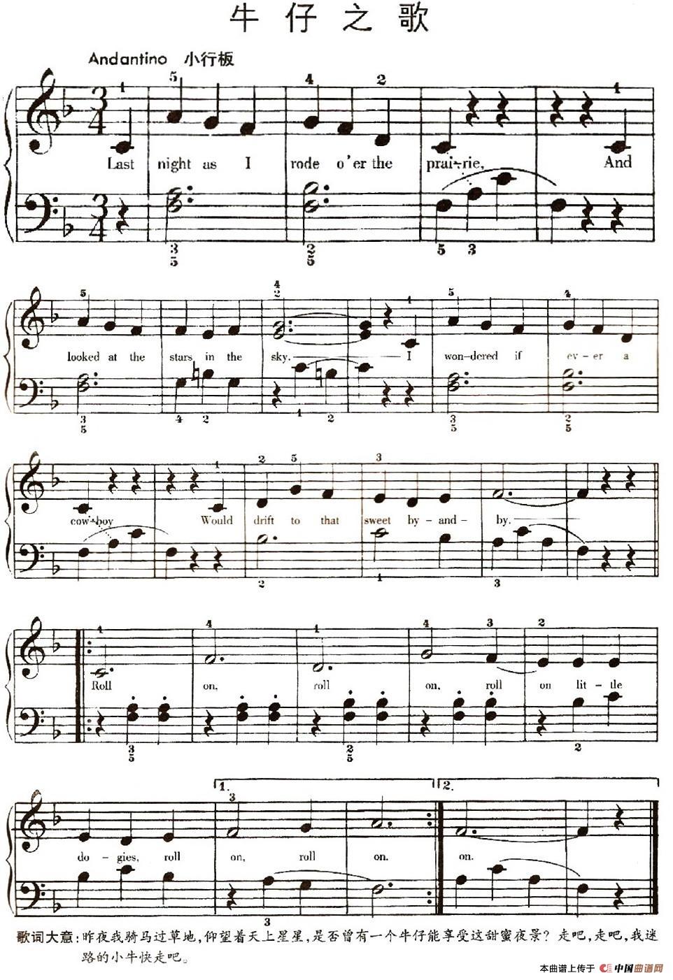 温馨提示:想要保存牛仔之歌,尽显西部风情, 牛仔之歌,演绎别样豪迈, 牛仔之歌,诉说牛仔故事, 牛仔之歌,奏响不羁旋律, 牛仔之歌,展现自由魅力, 牛仔之歌,传递奔放情感, 牛仔之歌,勾勒牛仔形象, 牛仔之歌,谱写独特曲谱?在曲谱图片上单击右键,选择"图片另存为...",即可将该曲谱保存到您的电脑本地,想要打印出来?将图片插入到WORD中,调整合适到大小打印即可。
