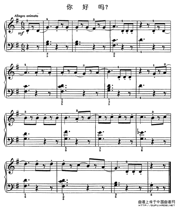 温馨提示:想要保存你好吗?问候暖人心()曲谱?在曲谱图片上单击右键,选择"图片另存为...",即可将该曲谱保存到您的电脑本地,想要打印出来?将图片插入到WORD中,调整合适到大小打印即可。