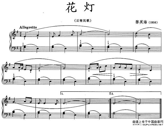 温馨提示:想要保存花灯钢琴谱,展现多彩花灯景曲谱?在曲谱图片上单击右键,选择"图片另存为...",即可将该曲谱保存到您的电脑本地,想要打印出来?将图片插入到WORD中,调整合适到大小打印即可。