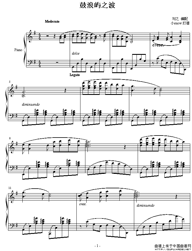 温馨提示:想要保存鼓浪屿之波钢琴谱,婉转演绎鼓浪屿风情曲谱?在曲谱图片上单击右键,选择"图片另存为...",即可将该曲谱保存到您的电脑本地,想要打印出来?将图片插入到WORD中,调整合适到大小打印即可。