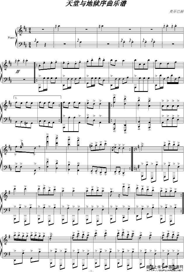温馨提示:想要保存《天堂与地狱序曲乐谱》钢琴谱,展现震撼音乐冲突 《天堂与地狱序曲乐谱》钢琴谱,诠释独特音乐意境 《天堂与地狱序曲乐谱》钢琴谱,感受别样音乐张力曲谱?在曲谱图片上单击右键,选择"图片另存为...",即可将该曲谱保存到您的电脑本地,想要打印出来?将图片插入到WORD中,调整合适到大小打印即可。
