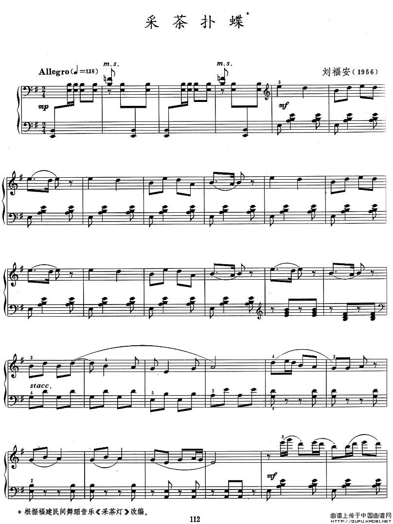 温馨提示:想要保存采茶扑蝶,轻快的旋律, 采茶扑蝶,展现茶乡景, 采茶扑蝶,传递欢乐情,曲谱?在曲谱图片上单击右键,选择"图片另存为...",即可将该曲谱保存到您的电脑本地,想要打印出来?将图片插入到WORD中,调整合适到大小打印即可。