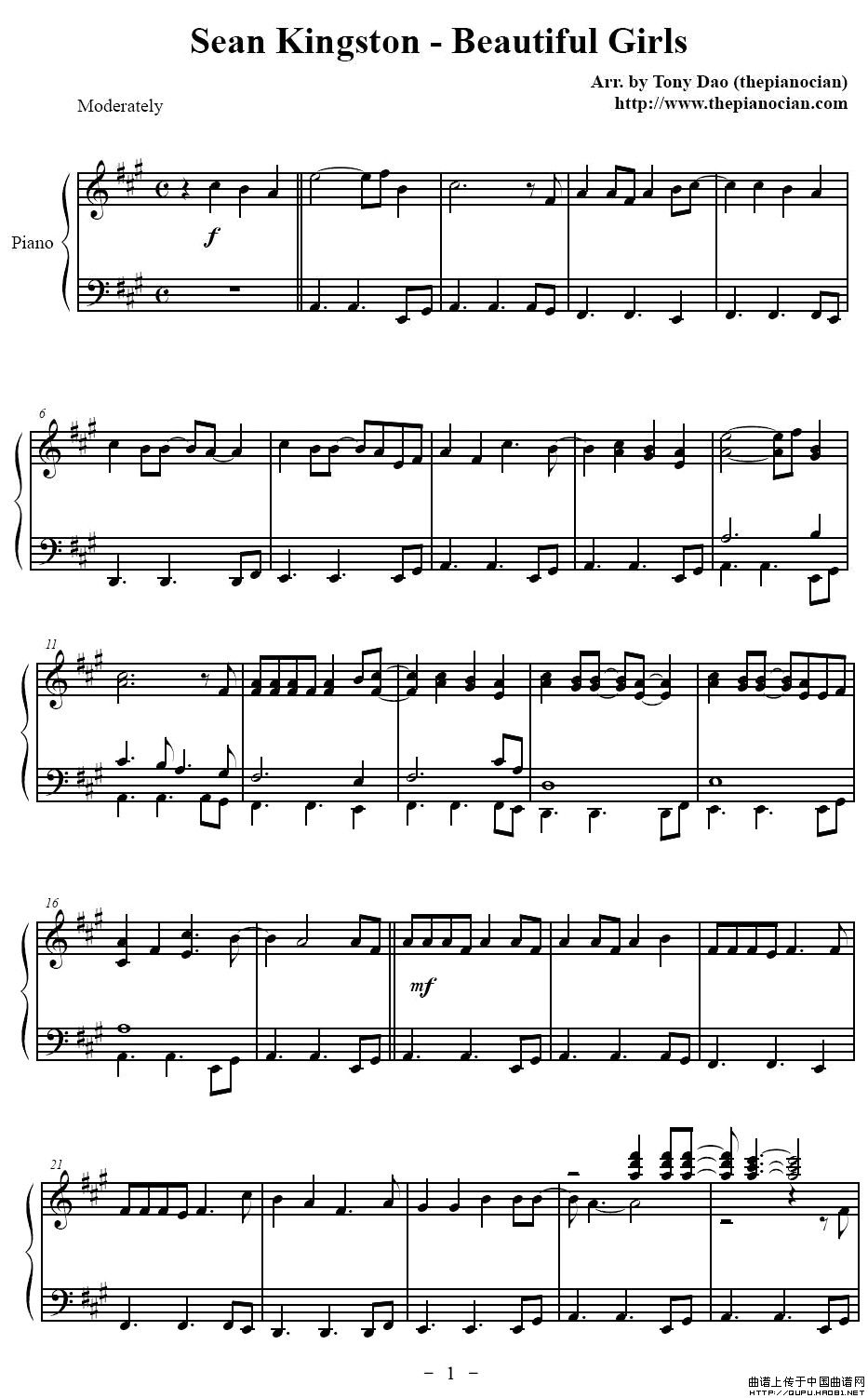 温馨提示:想要保存Sean Kingston-BeautifulGirls钢琴谱,旋律轻快的佳作曲谱?在曲谱图片上单击右键,选择"图片另存为...",即可将该曲谱保存到您的电脑本地,想要打印出来?将图片插入到WORD中,调整合适到大小打印即可。
