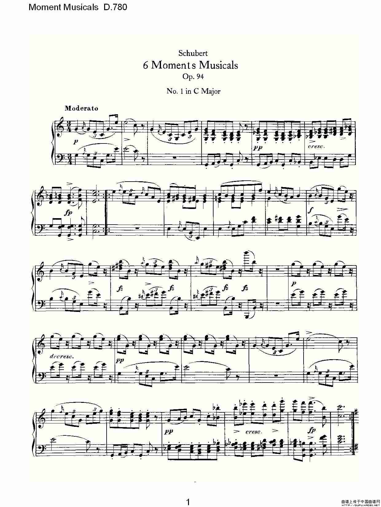温馨提示:想要保存《MomentMusicalsD.780(6首音乐瞬间)》钢琴谱,感受音乐瞬间魅力曲谱?在曲谱图片上单击右键,选择"图片另存为...",即可将该曲谱保存到您的电脑本地,想要打印出来?将图片插入到WORD中,调整合适到大小打印即可。