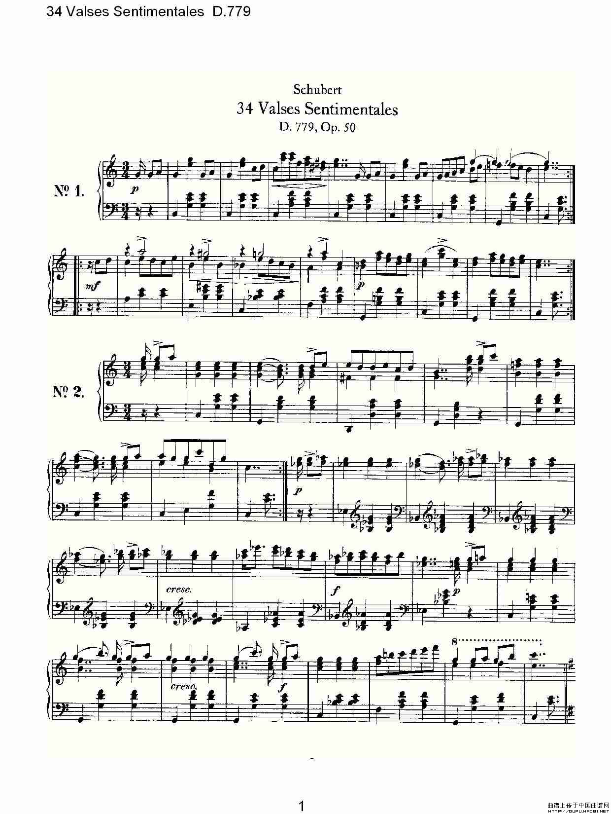 温馨提示:想要保存34伤感圆舞曲D.779钢琴谱,旋律尽显伤感之情曲谱?在曲谱图片上单击右键,选择"图片另存为...",即可将该曲谱保存到您的电脑本地,想要打印出来?将图片插入到WORD中,调整合适到大小打印即可。