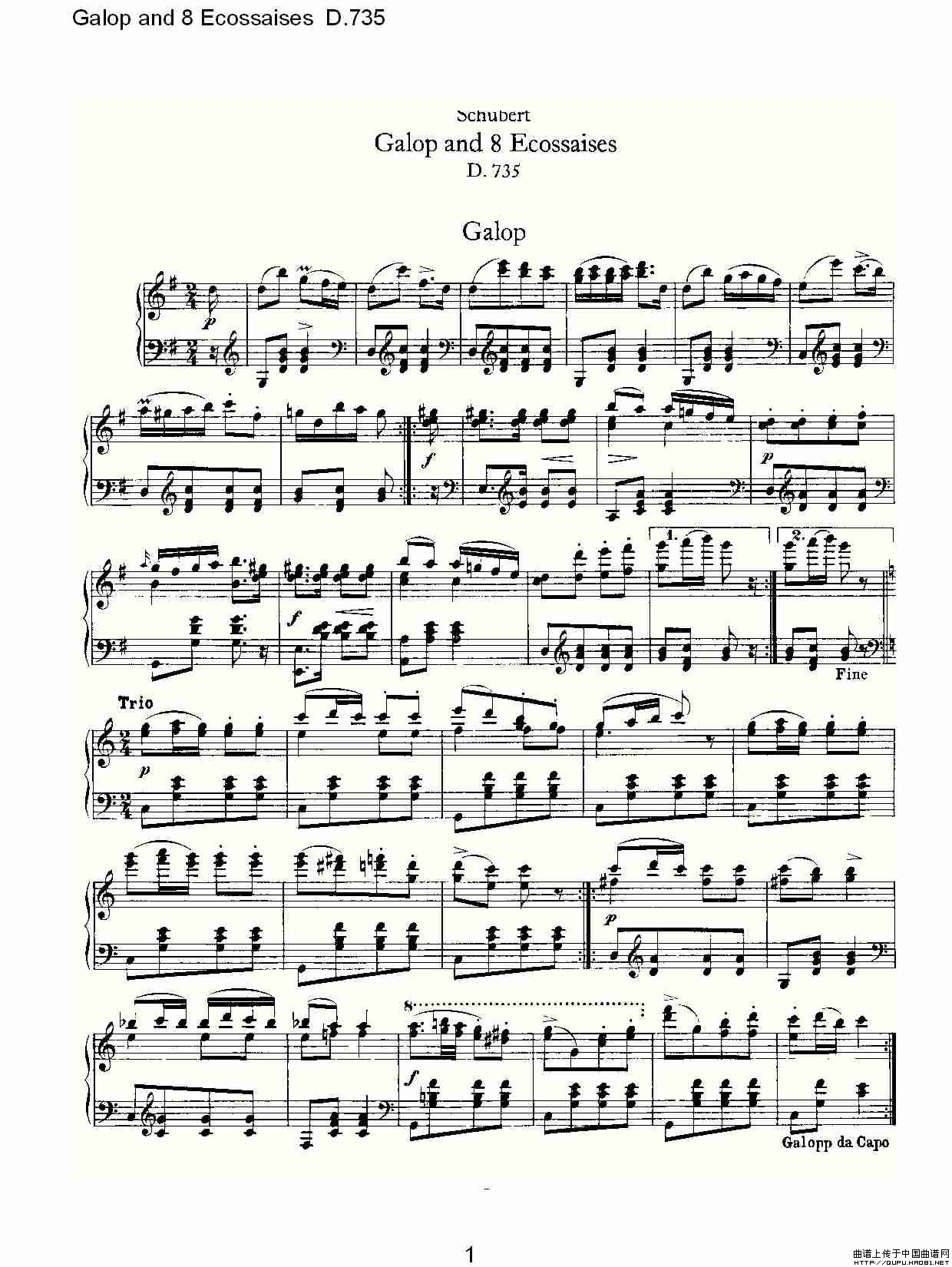 温馨提示:想要保存《Galopand8EcossaisesD.735》钢琴谱,曲风轻快富有活力曲谱?在曲谱图片上单击右键,选择"图片另存为...",即可将该曲谱保存到您的电脑本地,想要打印出来?将图片插入到WORD中,调整合适到大小打印即可。