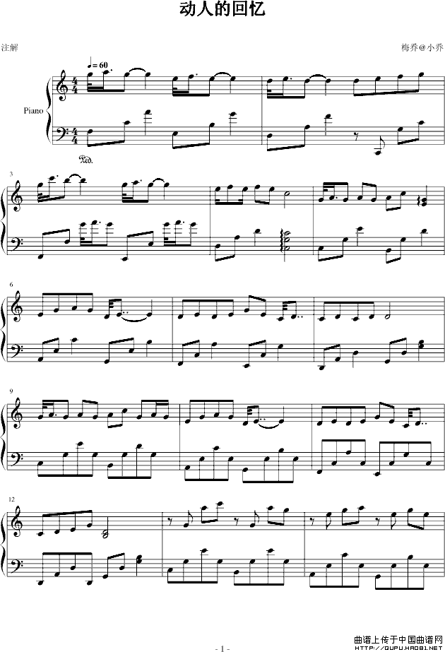温馨提示:想要保存动人的回忆,回忆中的动人旋律曲谱?在曲谱图片上单击右键,选择"图片另存为...",即可将该曲谱保存到您的电脑本地,想要打印出来?将图片插入到WORD中,调整合适到大小打印即可。