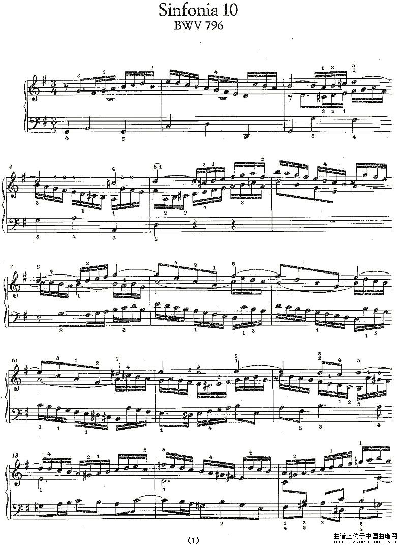 温馨提示:想要保存《Sinfonia10BWV-796》钢琴谱,巴赫经典乐章呈现曲谱?在曲谱图片上单击右键,选择"图片另存为...",即可将该曲谱保存到您的电脑本地,想要打印出来?将图片插入到WORD中,调整合适到大小打印即可。