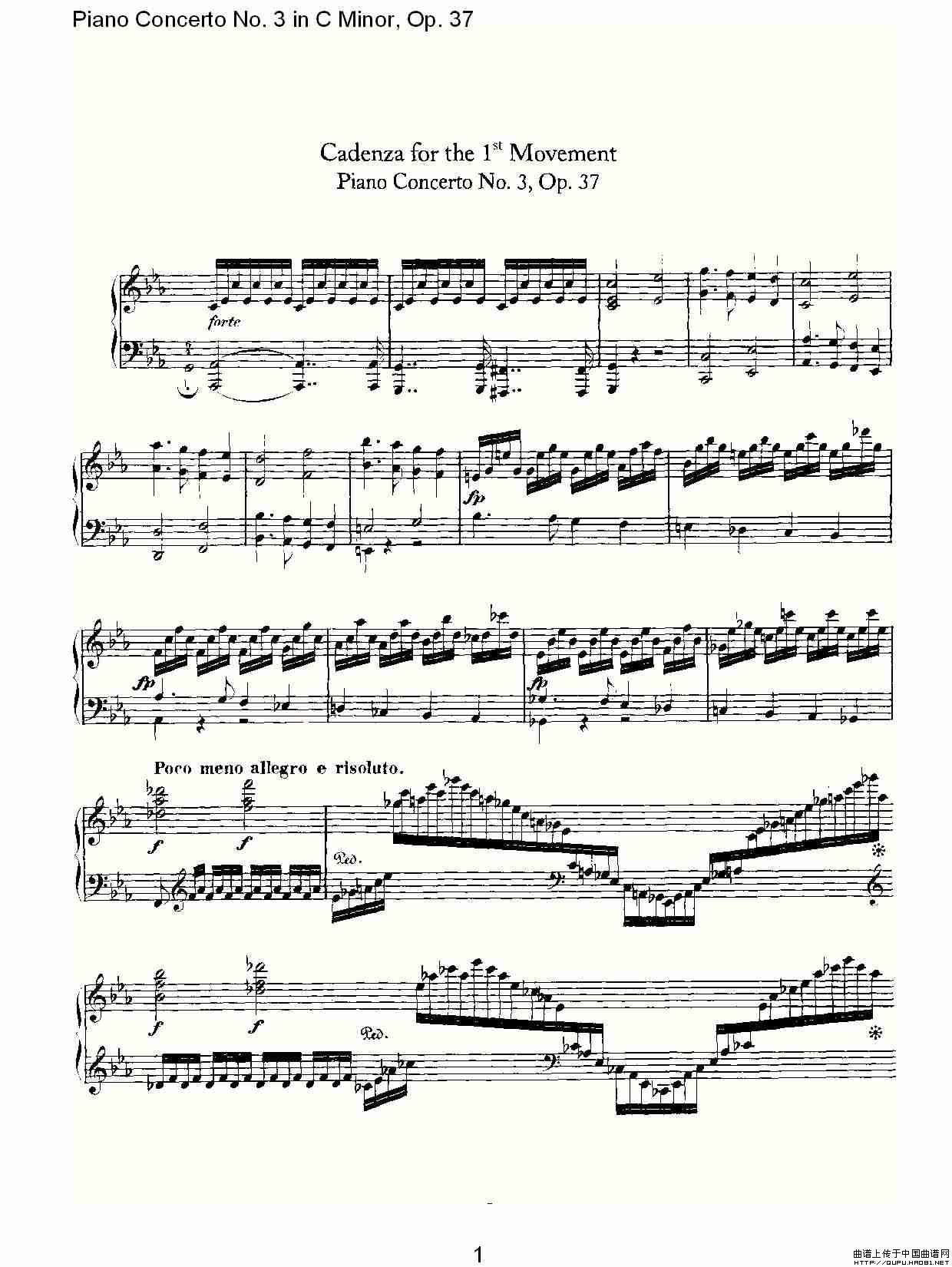 温馨提示:想要保存C小调钢琴第三协奏曲Op.37华彩乐章,展现动人音乐魅力曲谱?在曲谱图片上单击右键,选择"图片另存为...",即可将该曲谱保存到您的电脑本地,想要打印出来?将图片插入到WORD中,调整合适到大小打印即可。