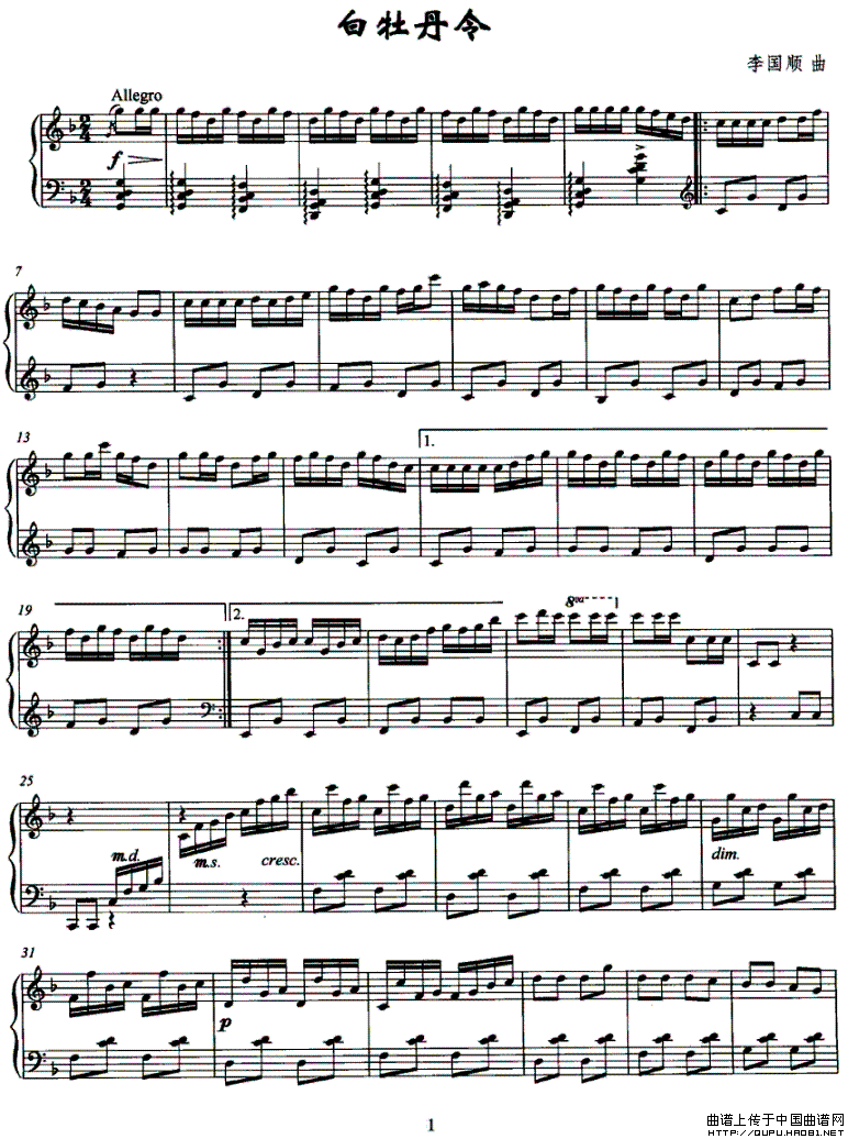温馨提示:想要保存《白牡丹令》钢琴谱,古朴曲调韵味足 《白牡丹令》钢琴谱,展现别样的风情 《白牡丹令》钢琴谱,旋律悠扬意无穷曲谱?在曲谱图片上单击右键,选择"图片另存为...",即可将该曲谱保存到您的电脑本地,想要打印出来?将图片插入到WORD中,调整合适到大小打印即可。