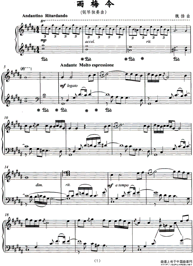 温馨提示:想要保存《雨梅令》钢琴谱,清新古典韵味浓 《雨梅令》钢琴谱,旋律婉转意悠长 《雨梅令》钢琴谱,雨中梅花别样情曲谱?在曲谱图片上单击右键,选择"图片另存为...",即可将该曲谱保存到您的电脑本地,想要打印出来?将图片插入到WORD中,调整合适到大小打印即可。