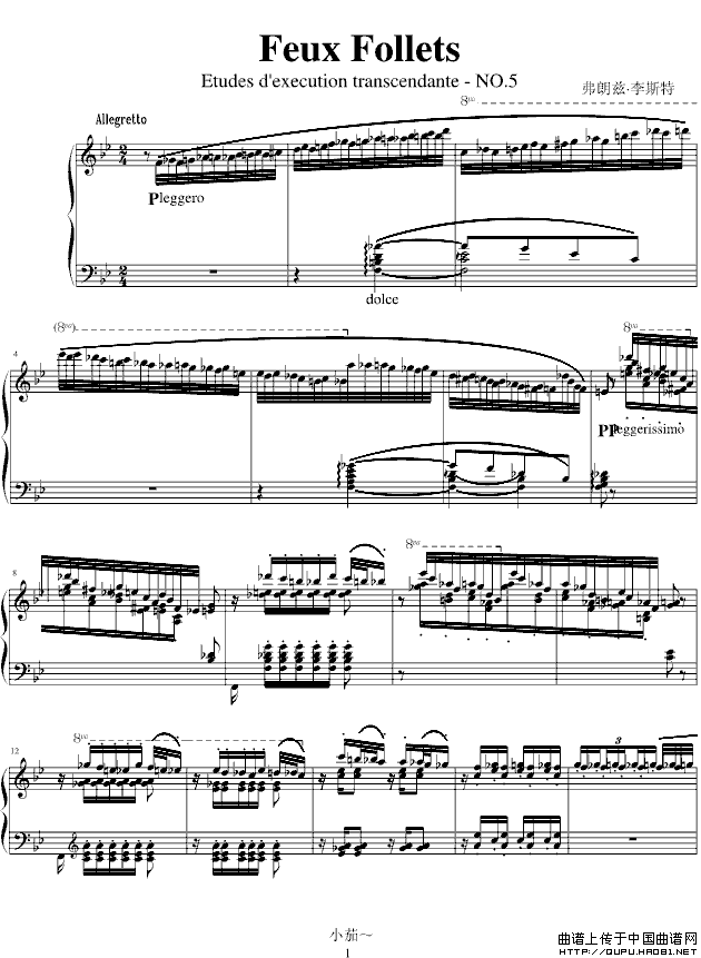 温馨提示:想要保存《FeuxFollets》钢琴谱,神秘灵动的旋律曲谱?在曲谱图片上单击右键,选择"图片另存为...",即可将该曲谱保存到您的电脑本地,想要打印出来?将图片插入到WORD中,调整合适到大小打印即可。