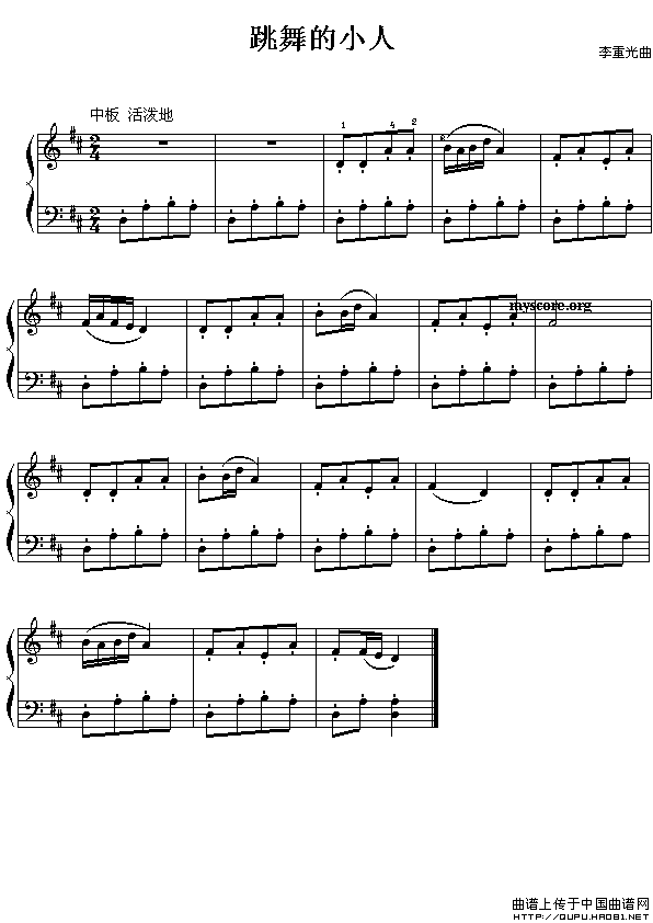 温馨提示:想要保存跳舞的小人,童趣满满乐曲,曲谱?在曲谱图片上单击右键,选择"图片另存为...",即可将该曲谱保存到您的电脑本地,想要打印出来?将图片插入到WORD中,调整合适到大小打印即可。