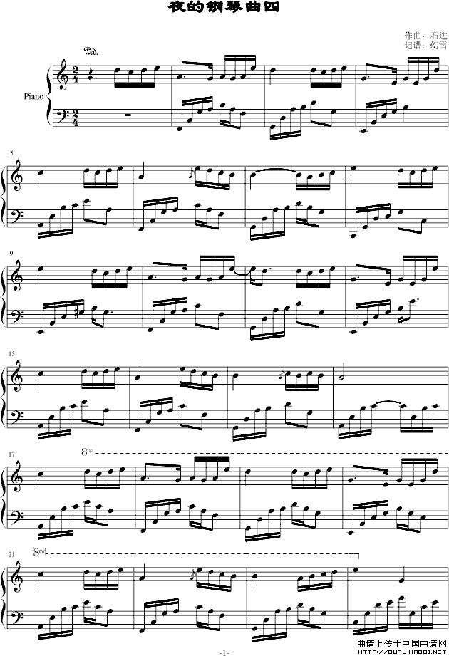 温馨提示:想要保存夜的钢琴曲四,舒缓静谧的旋律曲谱?在曲谱图片上单击右键,选择"图片另存为...",即可将该曲谱保存到您的电脑本地,想要打印出来?将图片插入到WORD中,调整合适到大小打印即可。