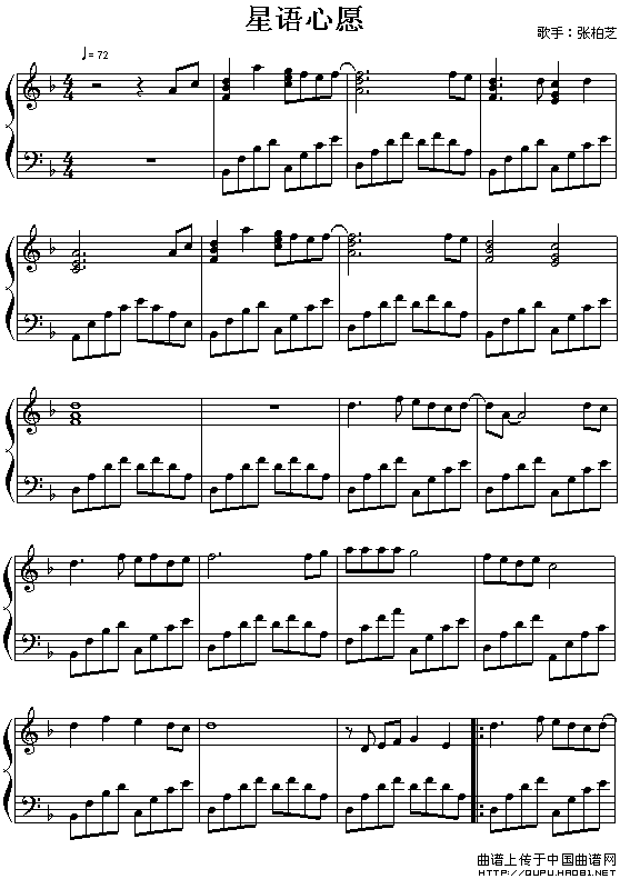 温馨提示:想要保存星语心愿(大众乐谱制谱版)钢琴谱,重温经典浪漫心愿 星语心愿(大众乐谱制谱版)钢琴谱,诉说动人爱情故事 星语心愿(大众乐谱制谱版)钢琴谱,聆听心底真挚话语曲谱?在曲谱图片上单击右键,选择"图片另存为...",即可将该曲谱保存到您的电脑本地,想要打印出来?将图片插入到WORD中,调整合适到大小打印即可。