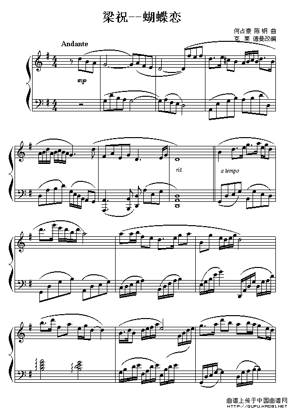 温馨提示:想要保存梁祝——蝴蝶恋,诠释唯美爱情曲谱?在曲谱图片上单击右键,选择"图片另存为...",即可将该曲谱保存到您的电脑本地,想要打印出来?将图片插入到WORD中,调整合适到大小打印即可。