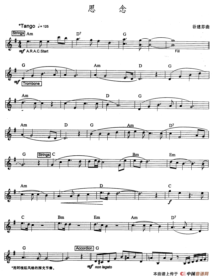 温馨提示:想要保存思念(爵士乐版)电子琴谱,独特爵士风诉思念曲谱?在曲谱图片上单击右键,选择"图片另存为...",即可将该曲谱保存到您的电脑本地,想要打印出来?将图片插入到WORD中,调整合适到大小打印即可。