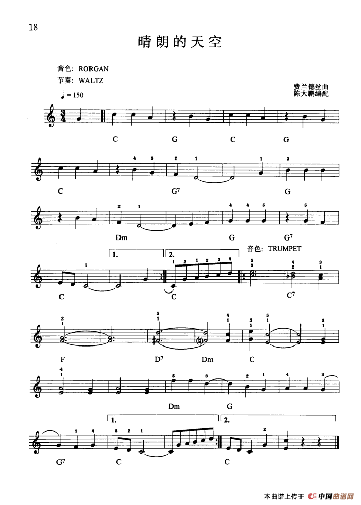 温馨提示:想要保存晴朗天空,展现纯净之美, 晴朗天空,传递宁静氛围, 晴朗天空,描绘美好画卷, 晴朗天空,奏响轻快旋律, 晴朗天空,诉说悠然意境, 晴朗天空,谱写温馨乐章, 晴朗天空,演绎浪漫风情, 晴朗天空,抒发惬意曲谱?在曲谱图片上单击右键,选择"图片另存为...",即可将该曲谱保存到您的电脑本地,想要打印出来?将图片插入到WORD中,调整合适到大小打印即可。