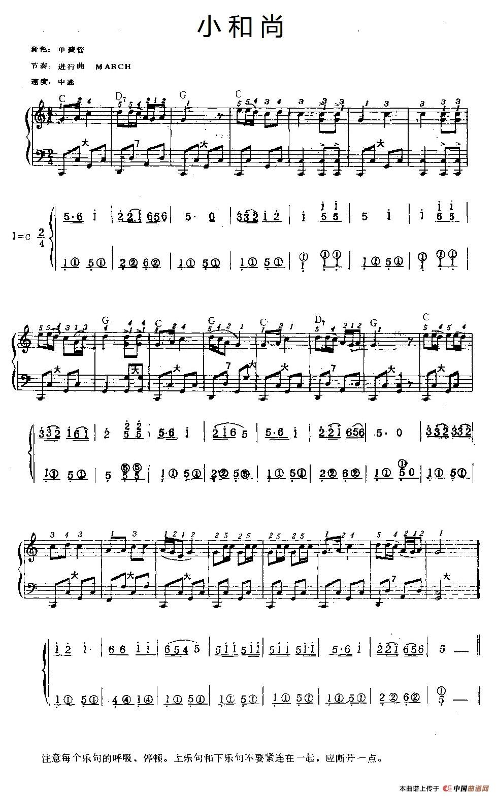《小和尚》这首电子琴手风琴两用谱的曲子,旋律轻快灵动。它仿佛带着我们走进了一个充满童趣与神秘的小世界。音符跳跃间,勾勒出小和尚的活泼模样。那简单却又富有韵味的曲调,传递出一种质朴纯真的情感。无论是用电子琴还是手风琴演奏,都能将小和尚的形象生动展现。让人在聆听中,仿佛看到小和尚在寺院里天真烂漫玩耍、探索的场景,感受到那份独特的童真与对未知的好奇,带来愉悦又温暖的听觉体验。