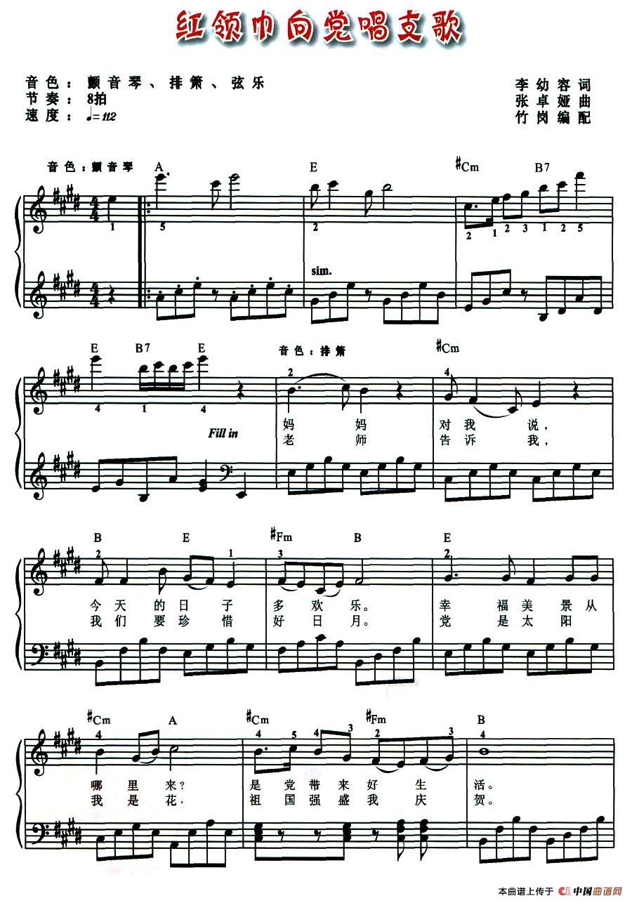 温馨提示:想要保存红领巾向党唱支歌,展现少年爱党情曲谱?在曲谱图片上单击右键,选择"图片另存为...",即可将该曲谱保存到您的电脑本地,想要打印出来?将图片插入到WORD中,调整合适到大小打印即可。