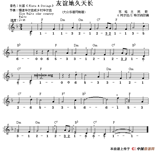 温馨提示:想要保存友谊地久天长电子琴谱,经典旋律情谊深曲谱?在曲谱图片上单击右键,选择"图片另存为...",即可将该曲谱保存到您的电脑本地,想要打印出来?将图片插入到WORD中,调整合适到大小打印即可。