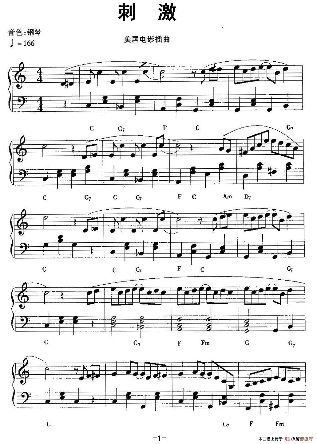温馨提示:想要保存《刺激》电子琴谱,节奏动感超带感曲谱?在曲谱图片上单击右键,选择"图片另存为...",即可将该曲谱保存到您的电脑本地,想要打印出来?将图片插入到WORD中,调整合适到大小打印即可。