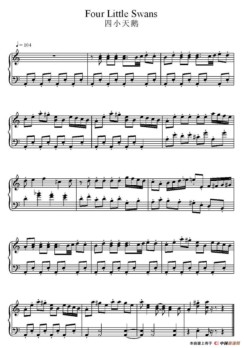 温馨提示:想要保存《四小天鹅》电子琴谱,经典欢快的舞曲 《四小天鹅》电子琴谱,展现灵动的舞姿 《四小天鹅》电子琴谱,传递欢乐的旋律曲谱?在曲谱图片上单击右键,选择"图片另存为...",即可将该曲谱保存到您的电脑本地,想要打印出来?将图片插入到WORD中,调整合适到大小打印即可。