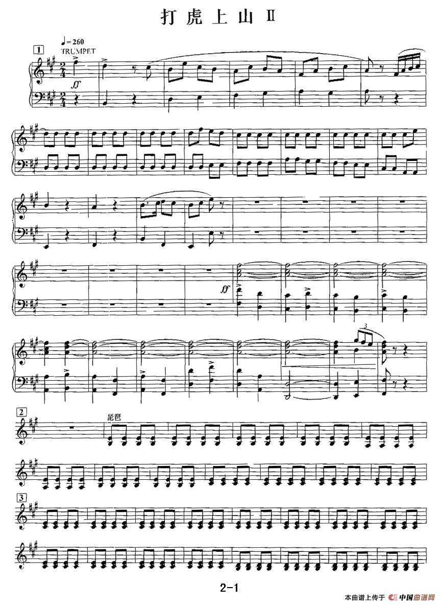 温馨提示:想要保存打虎上山电子琴谱,尽显英雄豪迈气曲谱?在曲谱图片上单击右键,选择"图片另存为...",即可将该曲谱保存到您的电脑本地,想要打印出来?将图片插入到WORD中,调整合适到大小打印即可。