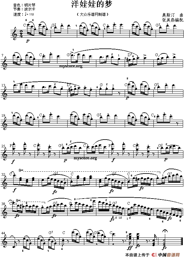 温馨提示:想要保存《洋娃娃的梦》电子琴谱,梦幻童真的旋律 《洋娃娃的梦》电子琴谱,展现甜美的梦境 《洋娃娃的梦》电子琴谱,奏响童趣的乐章曲谱?在曲谱图片上单击右键,选择"图片另存为...",即可将该曲谱保存到您的电脑本地,想要打印出来?将图片插入到WORD中,调整合适到大小打印即可。