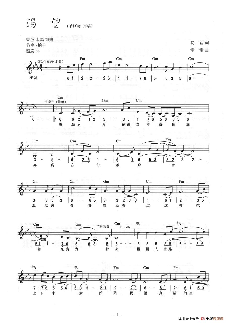 温馨提示:想要保存渴望线简混排弹唱谱,经典老歌诉衷肠曲谱?在曲谱图片上单击右键,选择"图片另存为...",即可将该曲谱保存到您的电脑本地,想要打印出来?将图片插入到WORD中,调整合适到大小打印即可。