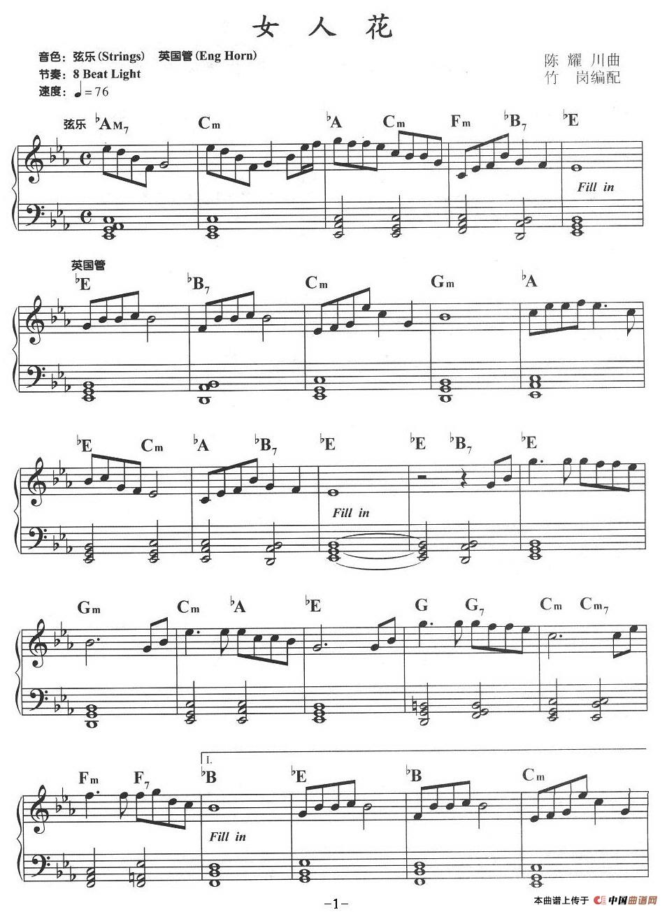 温馨提示:想要保存女人花电子琴谱,经典歌曲情意绵 女人花电子琴谱,婉转旋律诉衷肠 女人花电子琴谱,柔情感动无数人曲谱?在曲谱图片上单击右键,选择"图片另存为...",即可将该曲谱保存到您的电脑本地,想要打印出来?将图片插入到WORD中,调整合适到大小打印即可。