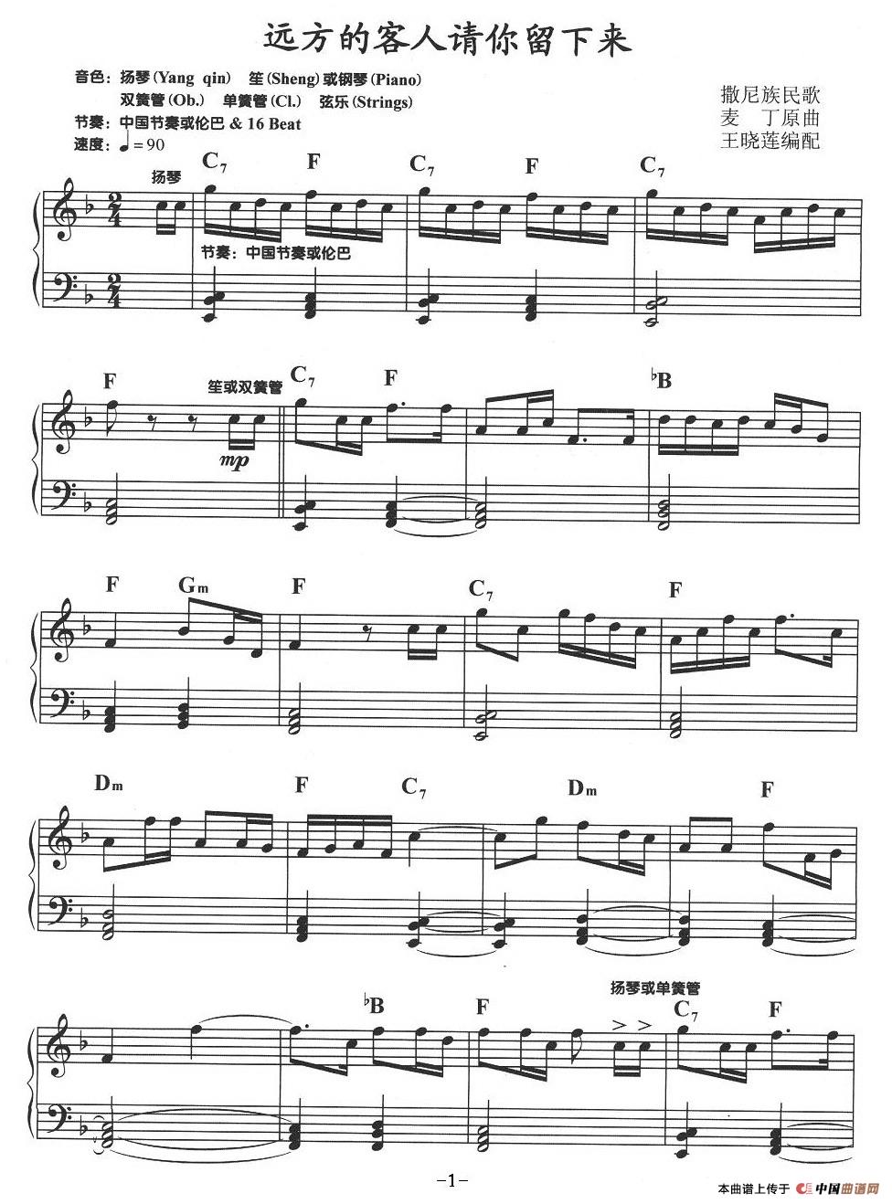 温馨提示:想要保存远方的客人请你留下来,彝族热情待客写照曲谱?在曲谱图片上单击右键,选择"图片另存为...",即可将该曲谱保存到您的电脑本地,想要打印出来?将图片插入到WORD中,调整合适到大小打印即可。