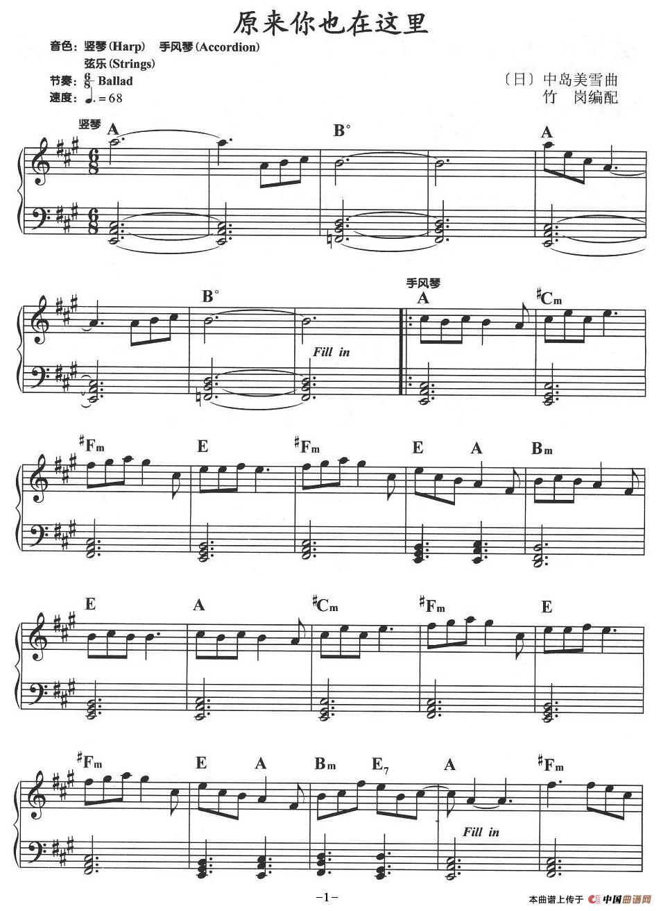 温馨提示:想要保存原来你也在这里电子琴谱,刘若英经典歌曲 原来你也在这里电子琴谱,探寻歌曲中的深情 原来你也在这里电子琴谱,感受爱情的相遇 原来你也在这里电子琴谱,聆听动人的旋律曲谱?在曲谱图片上单击右键,选择"图片另存为...",即可将该曲谱保存到您的电脑本地,想要打印出来?将图片插入到WORD中,调整合适到大小打印即可。