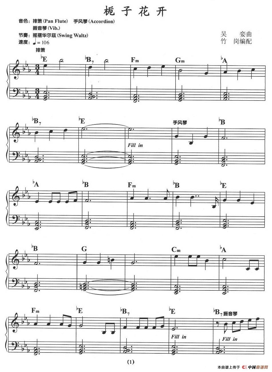 温馨提示:想要保存栀子花开,青春的旋律,栀子花开,美好的记忆,栀子花开,纯真的情感曲谱?在曲谱图片上单击右键,选择"图片另存为...",即可将该曲谱保存到您的电脑本地,想要打印出来?将图片插入到WORD中,调整合适到大小打印即可。