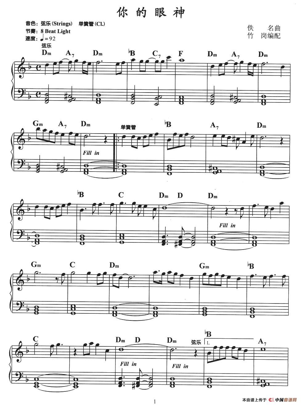 温馨提示:想要保存《你的眼神》电子琴谱,传递深情眼眸魅力曲谱?在曲谱图片上单击右键,选择"图片另存为...",即可将该曲谱保存到您的电脑本地,想要打印出来?将图片插入到WORD中,调整合适到大小打印即可。
