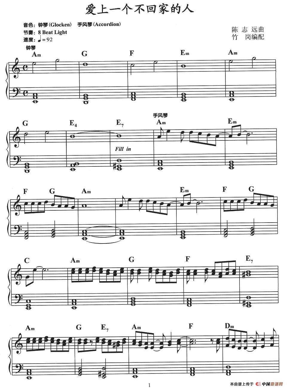 温馨提示:想要保存爱上不回家的人,经典情歌令人伤曲谱?在曲谱图片上单击右键,选择"图片另存为...",即可将该曲谱保存到您的电脑本地,想要打印出来?将图片插入到WORD中,调整合适到大小打印即可。