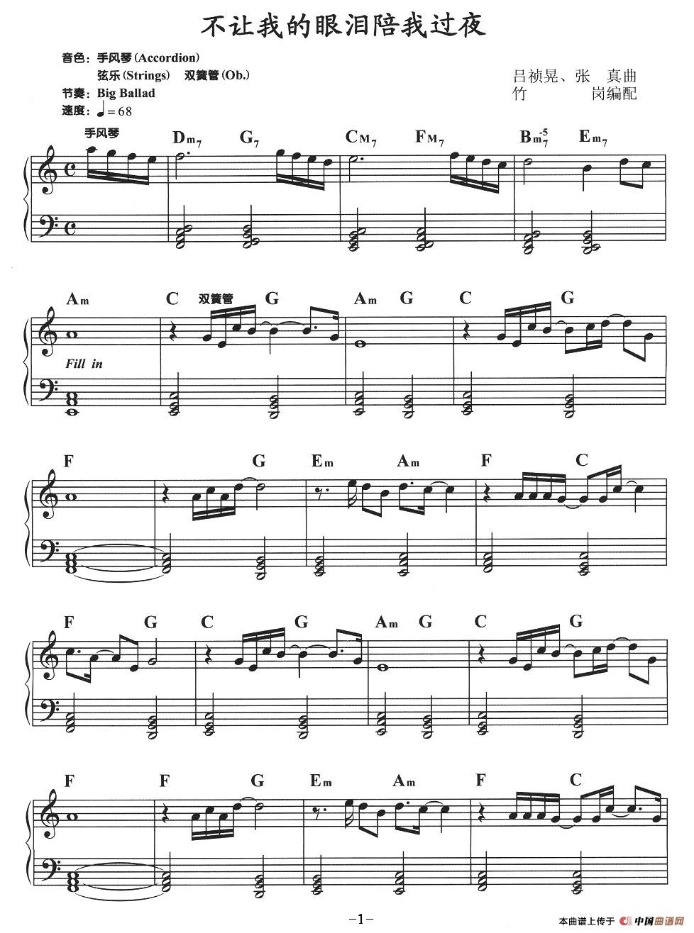 温馨提示:想要保存不让我的眼泪陪我过夜,经典催泪情歌 (保留电子琴谱)曲谱?在曲谱图片上单击右键,选择"图片另存为...",即可将该曲谱保存到您的电脑本地,想要打印出来?将图片插入到WORD中,调整合适到大小打印即可。