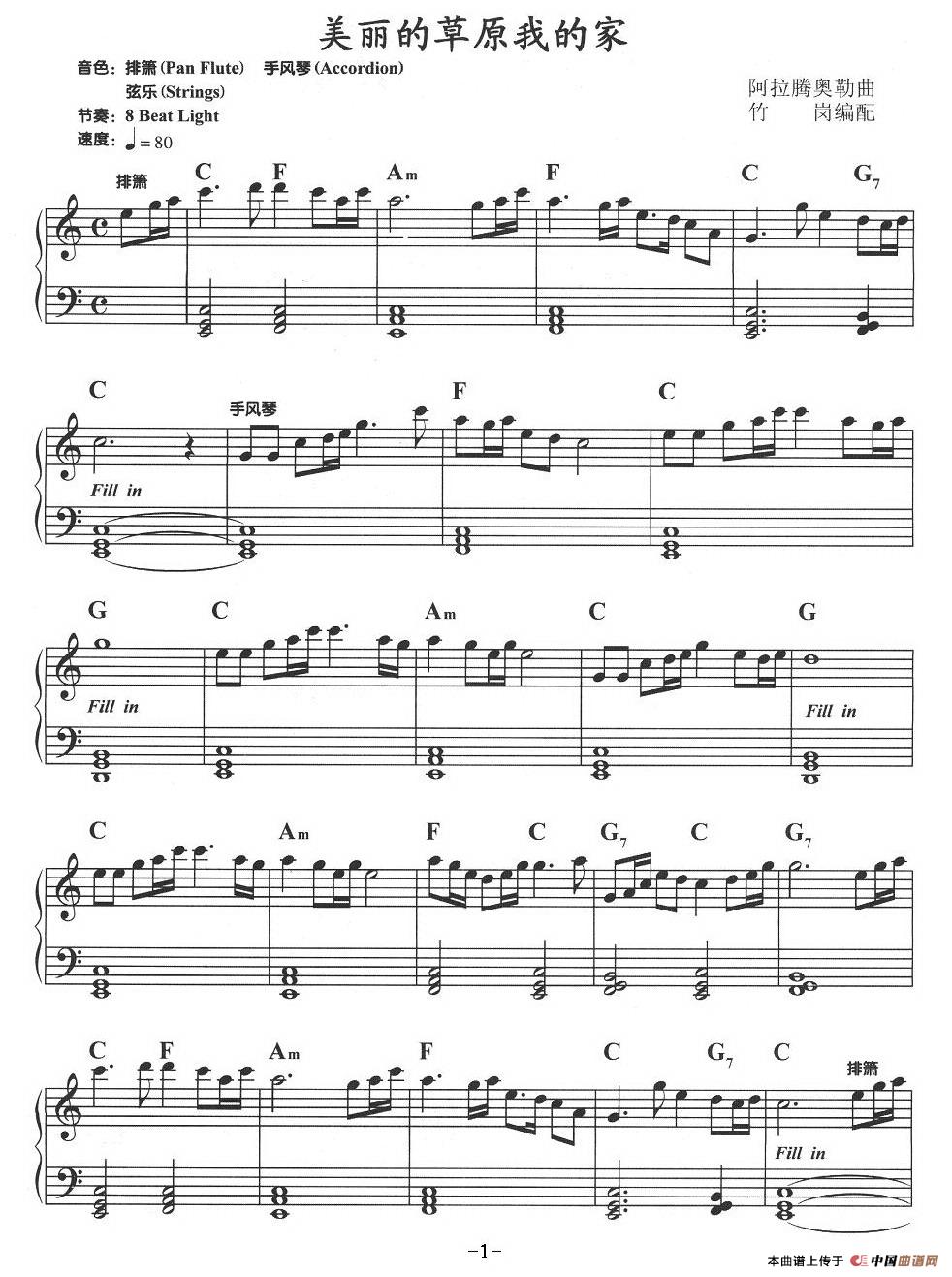 温馨提示:想要保存美丽的草原我的家,描绘草原绝美画卷曲谱?在曲谱图片上单击右键,选择"图片另存为...",即可将该曲谱保存到您的电脑本地,想要打印出来?将图片插入到WORD中,调整合适到大小打印即可。