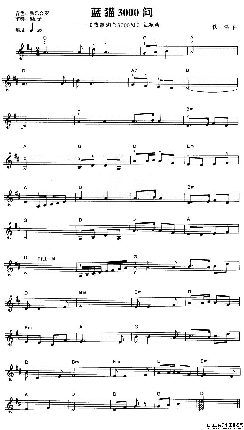 温馨提示:想要保存蓝猫 3000 问电子琴谱,童年回忆的旋律曲谱?在曲谱图片上单击右键,选择"图片另存为...",即可将该曲谱保存到您的电脑本地,想要打印出来?将图片插入到WORD中,调整合适到大小打印即可。