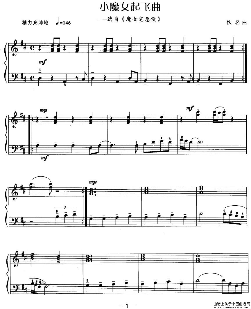 温馨提示:想要保存小魔女起飞曲,充满奇幻色彩曲谱?在曲谱图片上单击右键,选择"图片另存为...",即可将该曲谱保存到您的电脑本地,想要打印出来?将图片插入到WORD中,调整合适到大小打印即可。