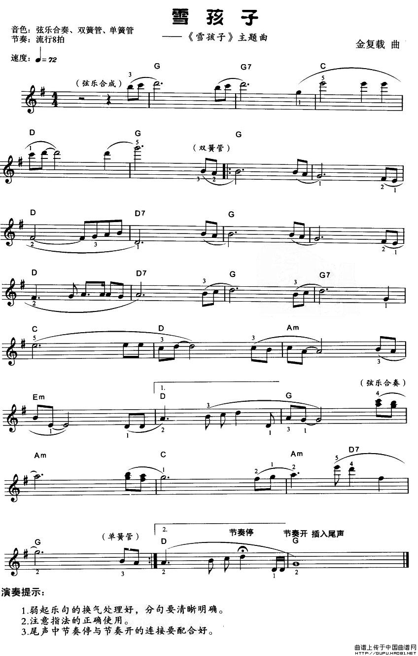 温馨提示:想要保存雪孩子电子琴谱,经典动画主题曲 雪孩子电子琴谱,冬日温暖的童话 雪孩子电子琴谱,纯真友情的赞歌曲谱?在曲谱图片上单击右键,选择"图片另存为...",即可将该曲谱保存到您的电脑本地,想要打印出来?将图片插入到WORD中,调整合适到大小打印即可。