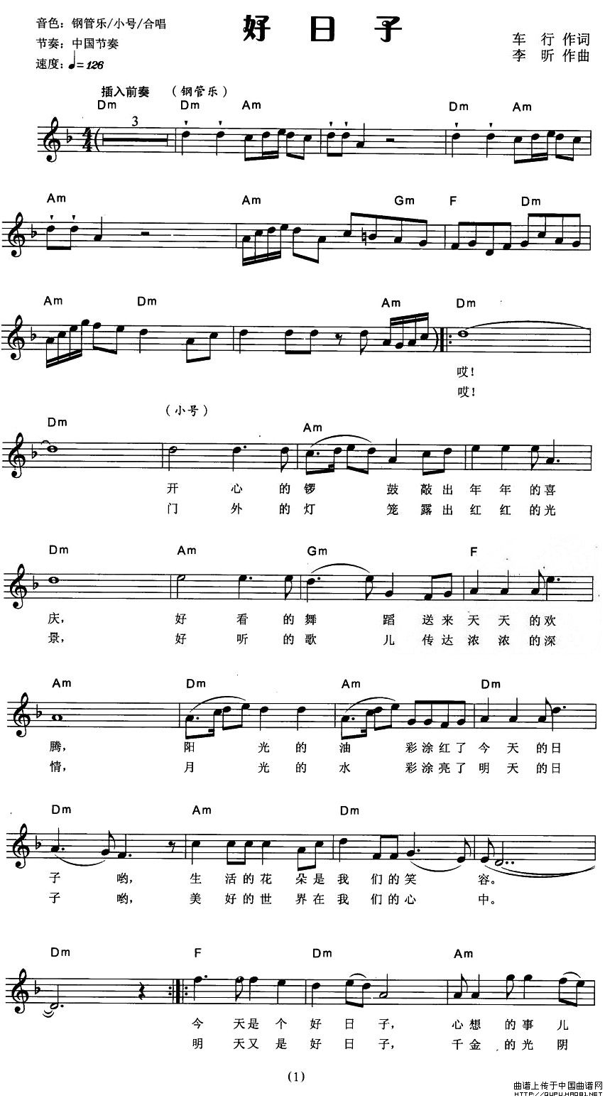 温馨提示:想要保存好日子弹唱谱,喜庆欢乐颂,好日子电子琴谱,幸福旋律扬,好日子简谱分享,生活真美好,曲谱?在曲谱图片上单击右键,选择"图片另存为...",即可将该曲谱保存到您的电脑本地,想要打印出来?将图片插入到WORD中,调整合适到大小打印即可。