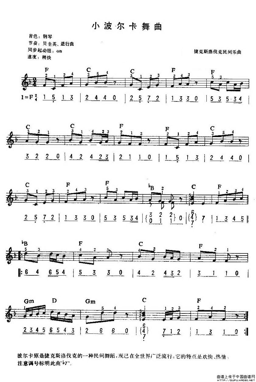 温馨提示:想要保存小波尔卡舞曲,节奏明快活泼曲谱?在曲谱图片上单击右键,选择"图片另存为...",即可将该曲谱保存到您的电脑本地,想要打印出来?将图片插入到WORD中,调整合适到大小打印即可。
